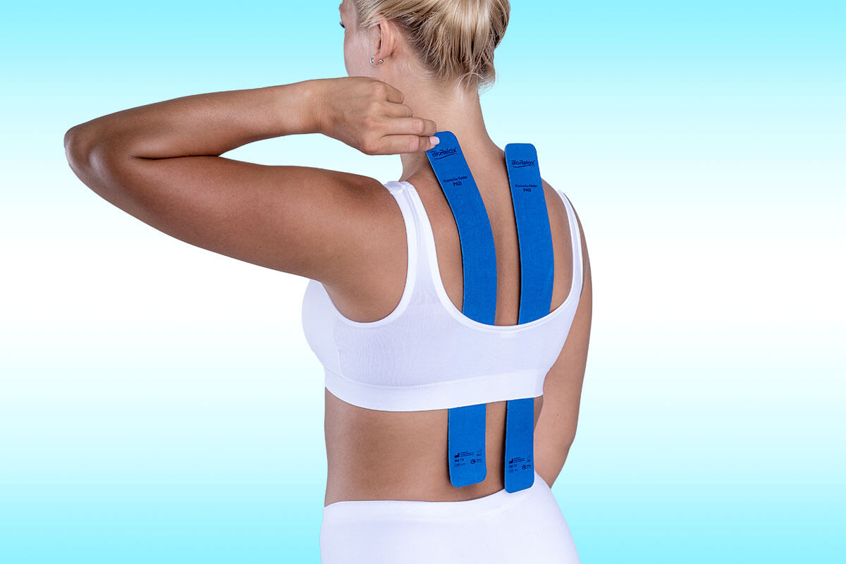 - im Nacken (z.B. mit einem leichten Halstuch oder Schal einwickeln und umhängen oder einfach zwei BioRelax® Haltebänder verbinden)